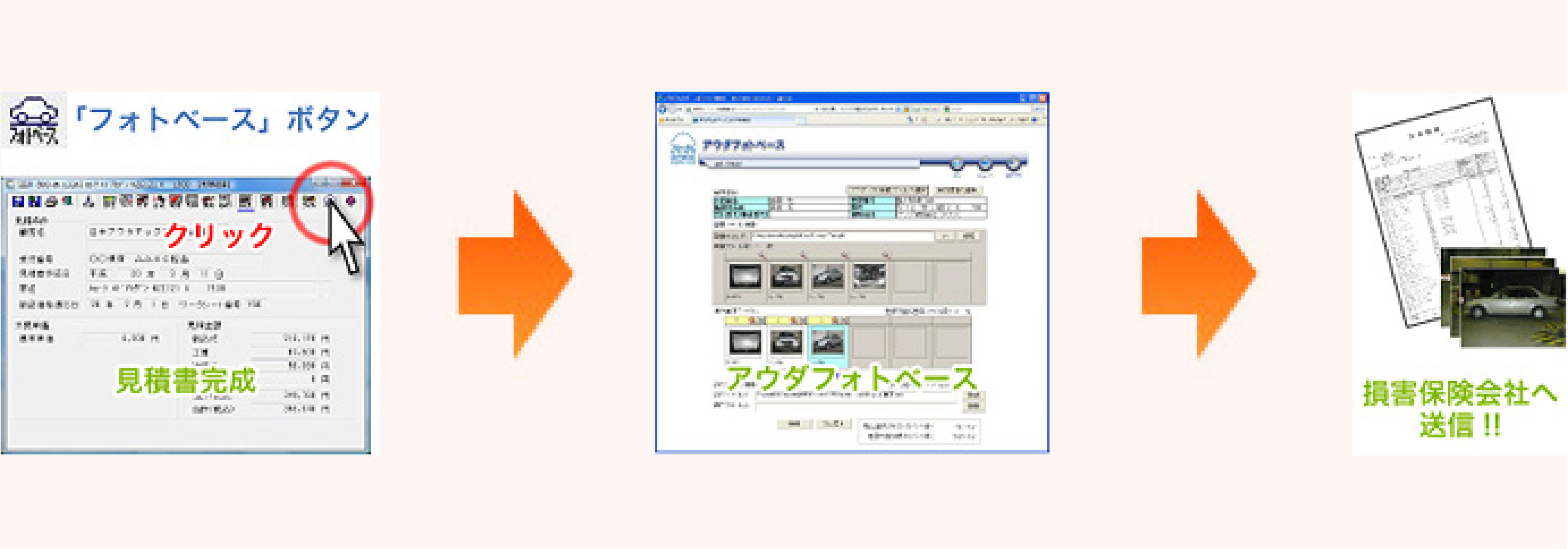 作成した見積書を、事故車の画像と一緒に、「コグニフォトベース」を導入している損保・各種共済へ簡単に送ることができます。