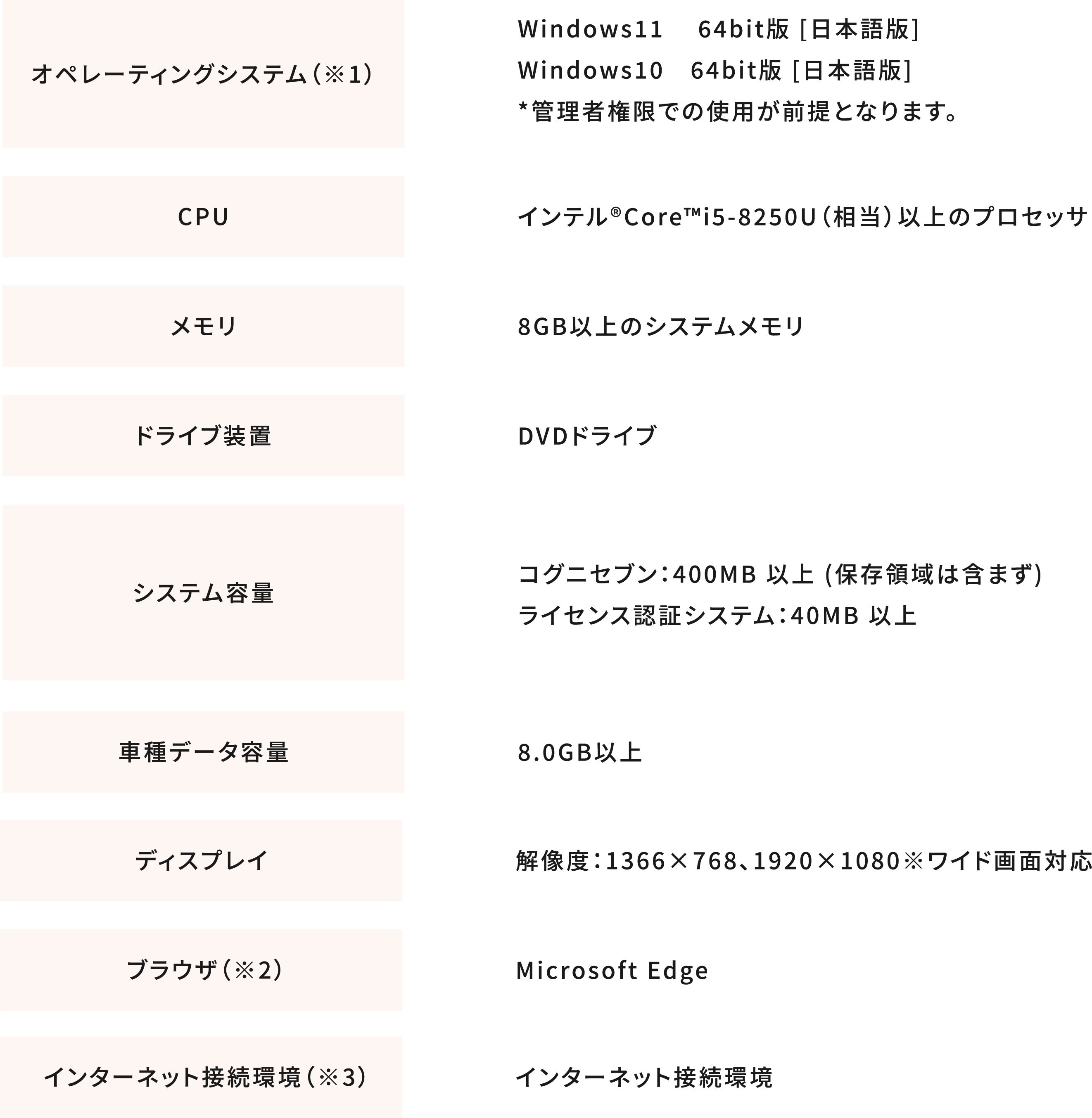 ※1 Windows8.1以前のOSは動作環境外となります。動作環境外でご利用される場合は、処理速度に影響が出る等、本システムの機能を正しく利用できない場合があり、動作保証対象外となります。
